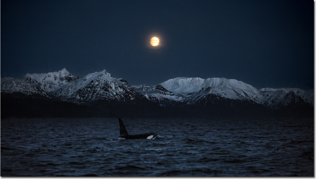 #Norway #fjords #orca #moon #moonlight #seascape #landscape #travel #Skjervoy #winter