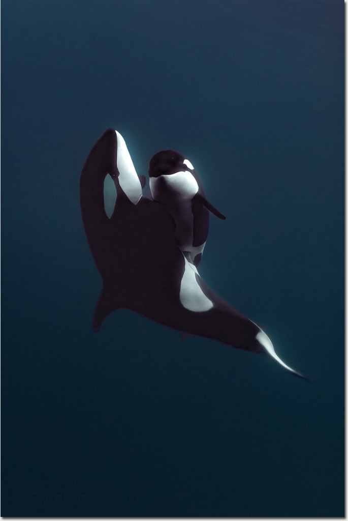 Monday, November 17. 2025Play Time![]() On this occasion, I’d free-dived quite deep and found myself looking up toward the surface as mother and child swam into view. Noticing my strategic position below them, I’m sure I had just become the subject of that day’s lesson in playful showing off. As the two approached, the mum rotated as she glided by and continued swimming upside-down. The youngster, swimming tail-to-nose in front of her, followed her lead, and together they drifted down to me and then alongside. At first, I thought they would simply swim on, bringing an already beautiful encounter to a close. But then something unexpected happened. In a movement worthy of some exquisitely choreographed ballet, the young orca completed a full turn, circling back around its mum. The pair spiralled around each other up toward the surface before slipping off into the blue beyond. How humbling, if only for a moment, to feature in their awareness, to be the focus of their attention, and to witness so playful a gesture. #arctic #fjords #MarineMammals #norway #oceanlife #orca #Skjervoy # OrcinusAter #mother #baby Friday, November 14. 2025River in the Sky![]() While in northern Norway, we experienced the northern lights almost every night the sky was clear. On this occasion, a small group of us climbed to the top of Stussnesfjellet, hoping for a spectacular view. Sadly, the aurora disappeared for most of our time up there, teasing us with just a few glimmers of green above the fjords. On the trail back down, and without warning, the sky above us lit up from horizon to horizon, a blazing green river of dancing light. From here there was no other view, just the aurora above. But wow, what a sky! We’re blessed with extraordinary solar activity right now, and images of the Merry Dancers, the Fyrialjus, and the Tahu-nui-a-rangi are appearing from all over the world. Friends in both Ireland and Australia are witnessing the Aurora Borealis and the Aurora Australis from places where they’re rarely seen. I’m so glad that so many of us are able to experience this beautiful sight without having to travel so far. #Aurora #AuroraBorealis #NorthernLights #NightSky #Skjervoy #Norway #Travel #FishEye Thursday, November 13. 2025Whale Belly![]() I was following an orca down deep when a flash of white caught my attention to my right. Below me, gliding gracefully toward the surface, was one massive belly belonging to Megaptera novaeangliae, a humpback whale. This giant was heading straight for the surface, and I was directly in its path. What a rush of emotions and conflicting instincts followed, self-preservation urging me to move, curiosity urging me to stay still and take it all in, and the photographer in me desperate to frame the shot. The photographer won that fleeting contest as I captured the whale’s ascent. This distended part of the humpback is not actually its belly, but the ventral pleats, long folds of skin and blubber that run from chin to belly. When the whale takes in a huge mouthful of herring and water, the pleats expand like accordion bellows. Moments later, the water is expelled, leaving behind a tasty meal of Norwegian herring. There are more frames to share as the gap between us closed, but I’ll leave those for another post. Once again, I’m so grateful for the opportunity to experience such an extraordinary place. #arctic #Norway #Skjervøy #humpback #whales #HumpBackwhale #feeding #WhaleWatching #MarineMammals Wednesday, November 12. 2025It’s Just Like Christmas![]() When we weren’t out on the water with the whales, we spent our time in the beautiful town of Skjervøy, in the heart of Northern Norway. Most days, we’d return around 3:30 in the afternoon, just as the sun and the light slipped away, leaving us in celestial twilight. From afar, the lights of Skjervøy would shimmer into view, growing brighter until the whole town looked like something straight out of a Christmas card. I’m told they keep their lights on here 24 hours a day to create a sense of warmth and life, to ward off the doldrums of the long, dark northern winter. The result is a place that feels cosy and alive, no matter how cold or dark it is outside. It’s such a beautiful town. I only wish I’d had more time to explore it, next time, I will for sure. #arctic #Norway #Skjervøy #lights #twilight #dawn #ChristmasCard #travel #WhaleWatching Tuesday, November 11. 2025Beauty Below Me![]() How can I describe what it’s like to float in a Norwegian fjord, with 200 meters of inky-blue water below me, as the ocean’s greatest predator glides into view? Despite the orca’s fearsome reputation, I feel no fear, only delight, joy, and awe. Watching these wild and beautiful creatures move with such grace, agility, and power is a rare and humbling experience, one I feel deeply grateful to witness. #arctic #fjords #Norway #OceanLife #orca #Skjervoy #MarineMammals Sunday, November 9. 2025A Baby is Born![]() We had just dropped our divers into the water. There were so many orca circling and cavorting. We all thought, “There must be herring below,” and were ready for the orca to feed. Suddenly, there was a great spray of crimson-red water from the middle of the orca action, a sight terrifying in what it might mean, with four of our guys in the water among them. With that event, and hoping the worst hadn’t happened, the orca all went into a frenzy of agitated behaviour, leaping over one another in a chaotic dance. Still, the two of us tending our boats on the surface had no idea what was happening below. Then there it was, a newborn orca, pushed up to the surface by its midwife team for its first breath. Later, with the help of the Norwegian Orca Survey team, we started piecing the story together. The crimson-red sea had been the placenta, ripped to shreds at birth, and the frenzy began as the mother and her midwife entourage worked frantically to push the newborn to the surface. It took quite some time befo